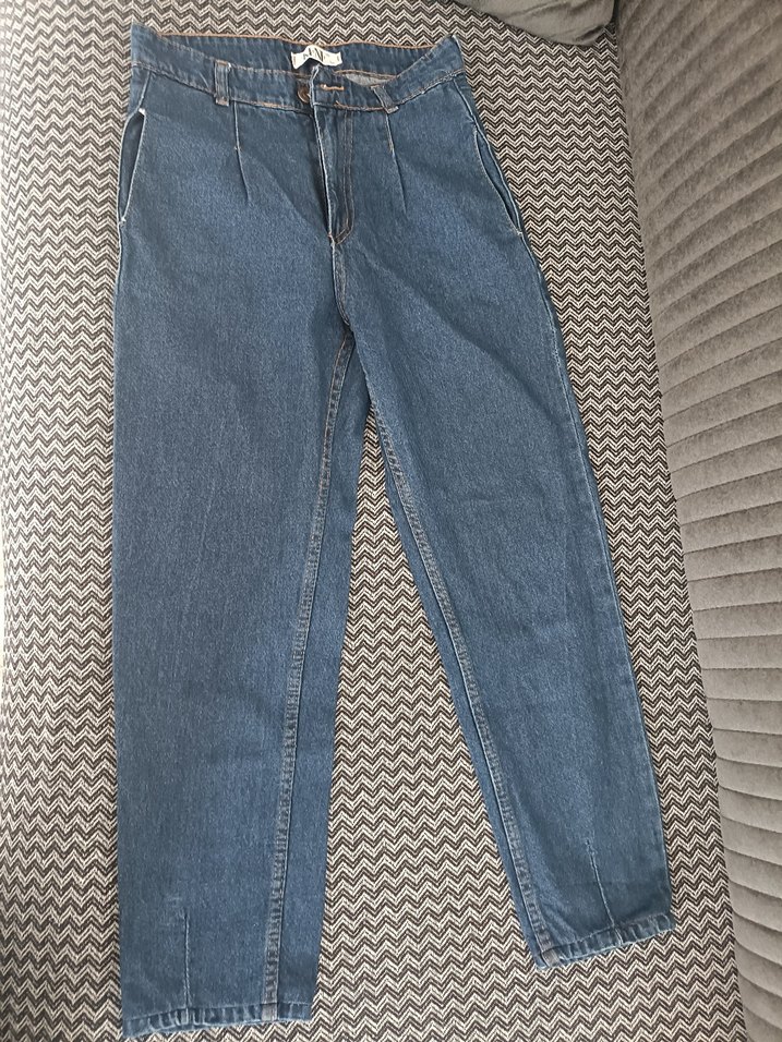 Kadınlar için regular fit, pile detaylı ve midi boy kot pantolon. Denim kumaştan, günlük kullanım için uygun sade mavi renkte sokak stili pantolon.