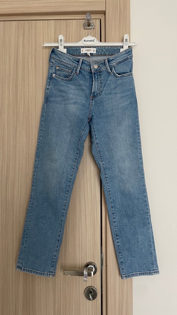 Mavi denim, regular fit ve midi boy kesime sahip, günlük rahat şıklık sunan kadın pantolonu.
