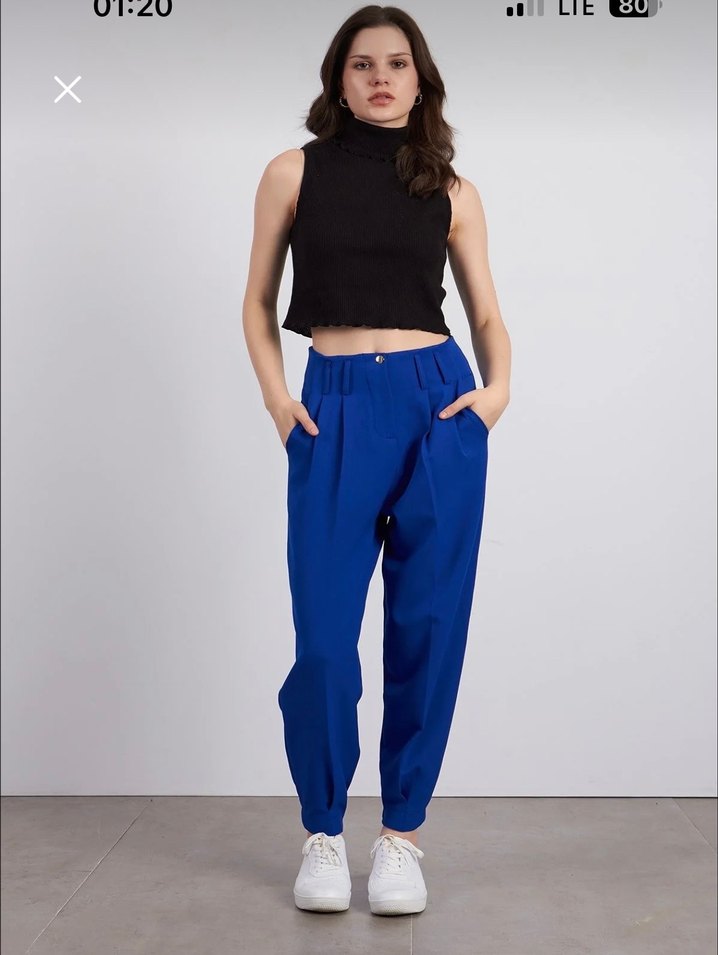 Kadınlar için koyu mavi denim kumaştan, salaş kesim ve midi boyda rahat pantolon. Günlük kullanıma uygun, zahmetsiz şıklık sunar.