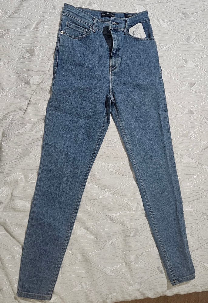 Kadınlar , dar kesim, mavi renkte denim kumaştan günlük rahat ve şık jean pantolon.