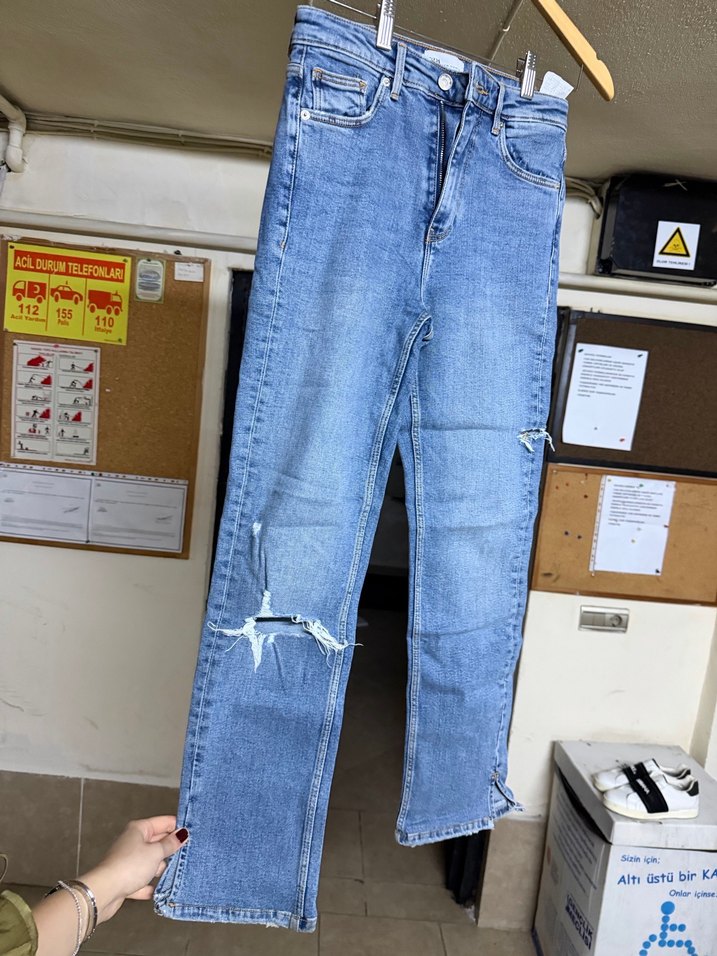 Mavi denimden yapılmış, normal boy ve regular fit kesime sahip, yırtık detaylı kadın jean. Günlük kullanıma uygun, trend sokak stiline uyum sağlar.