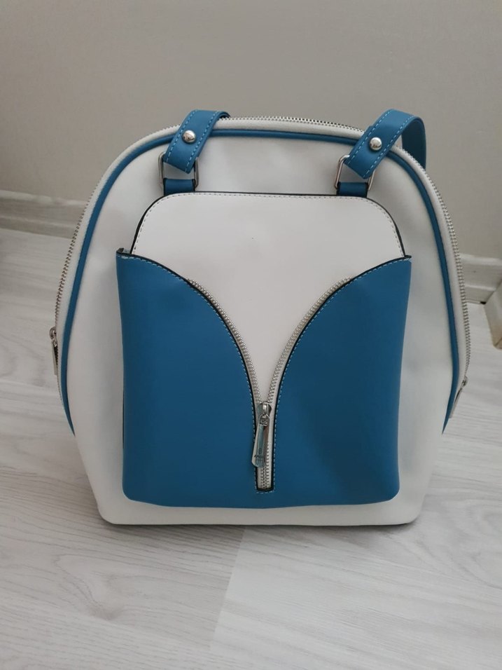 Kadın Mavi Deri Fermuarlı Sırt Çantası