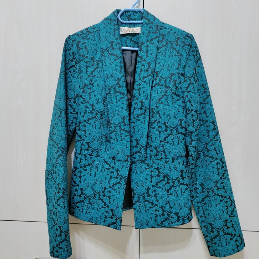 Kadın Mavi Desenli Uzun Kollu Blazer Ceket