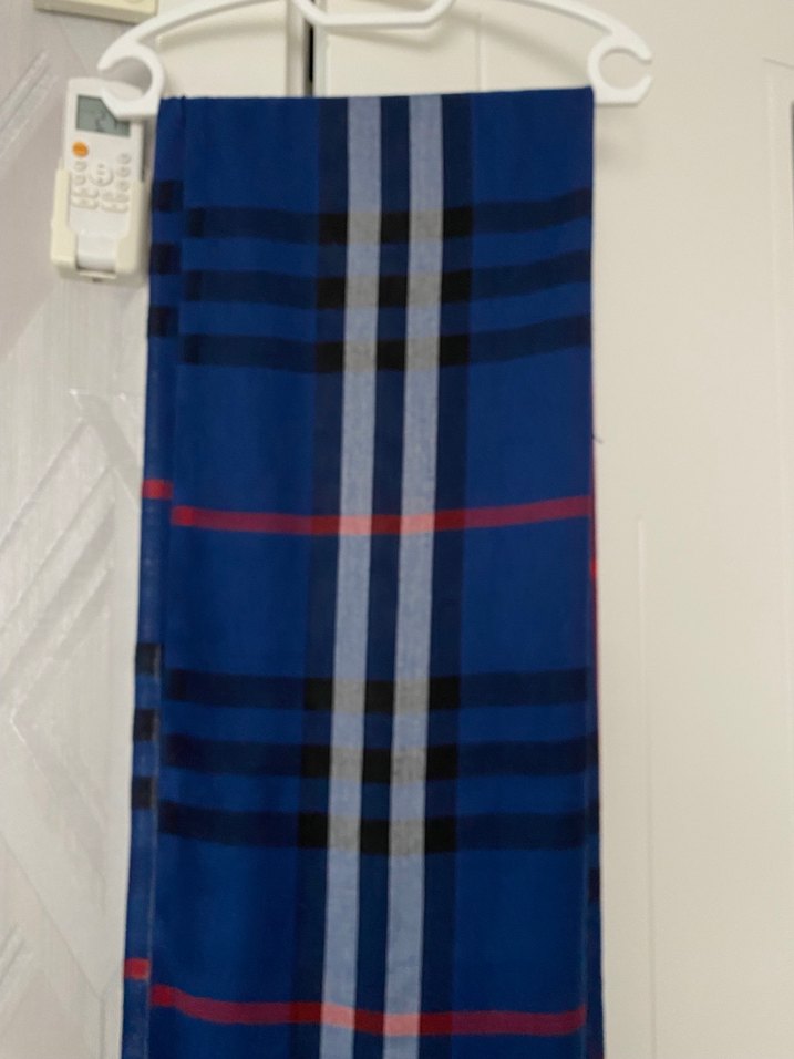 Kadınlar için drapeli tasarıma sahip, koyu mavi ve ekose desenli şal. Sentetik kumaştan, Paris sokak modasına uygun rahat stil.