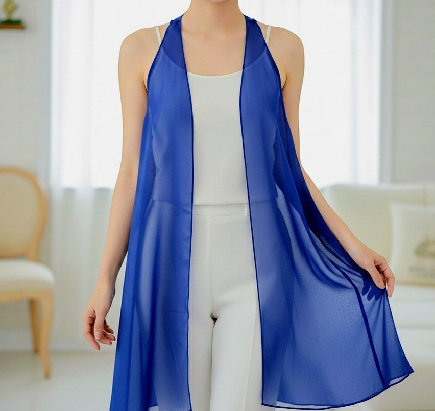 Kadın Mavi Drapeli tül yelek