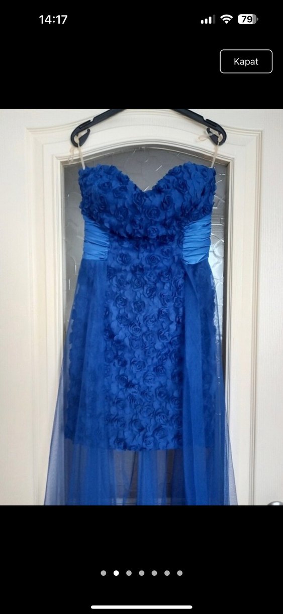 Kadın Mavi Drapeli Uzun Abiye Elbise