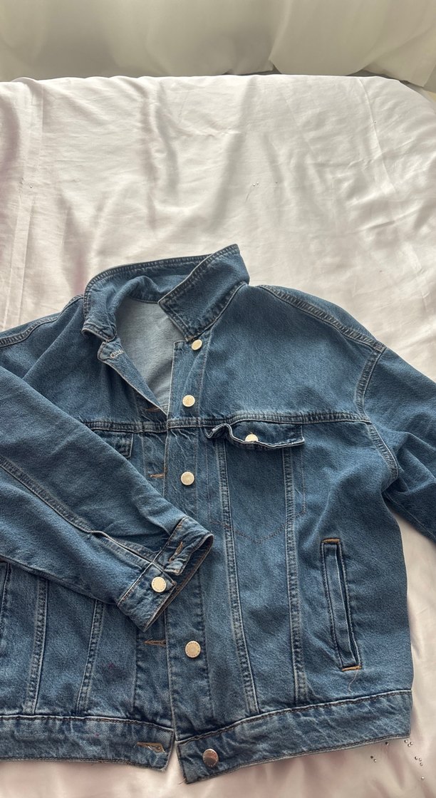 Kadınlar için düğmeli, uzun kollu ve notched lapel yakalı mavi denim ceket. Rahat kesimli ve gündelik sokak stili için uygun, midi boyda bir tasarım.