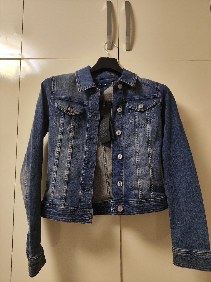Düğmeli, uzun kollu, mavi fitted denim ceket. Notch yakalı ve günlük sokak stili için uygun rahat kesim.