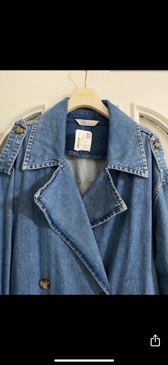 Kadın Mavi Düğmeli Denim trençkot