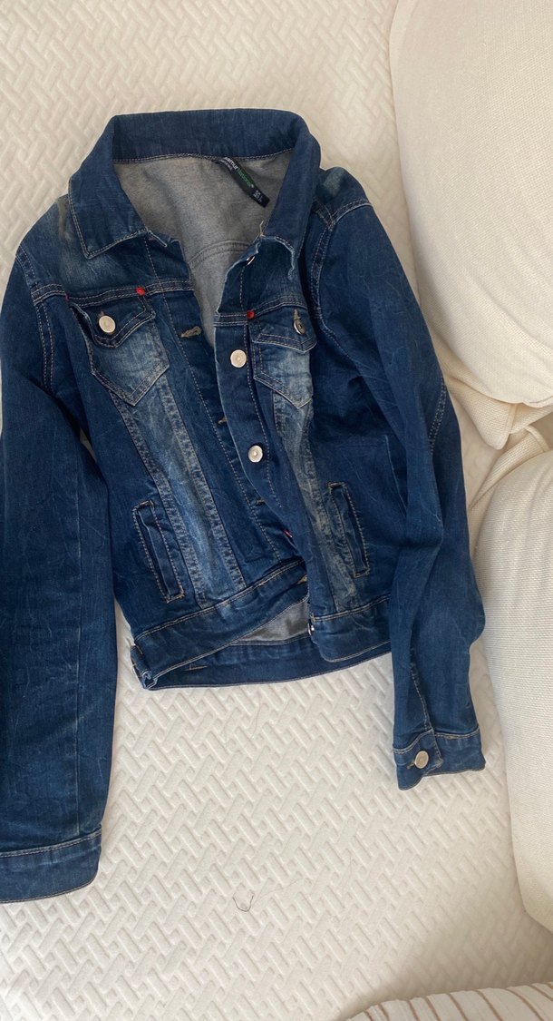 Kadınlar için düğmeli, uzun kollu, normal boyda, kesimli mavi denim ceket. Günlük rahat sokak stili için uygundur.