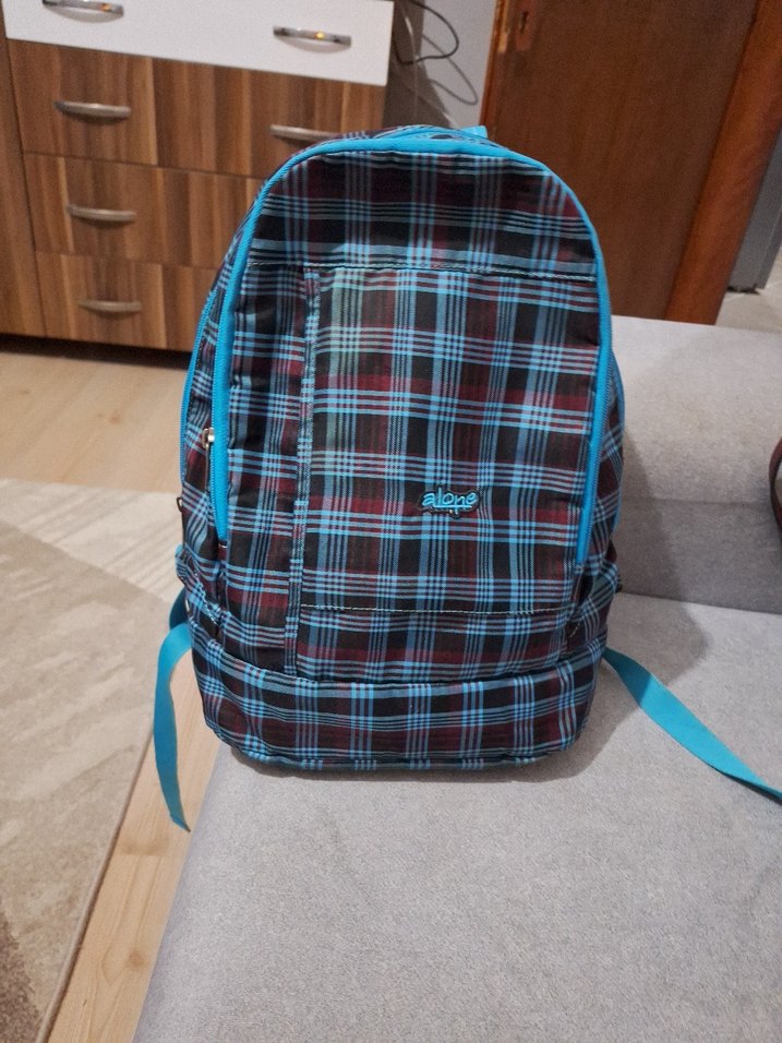 Kadın Mavi Ekose Sırt Çantası