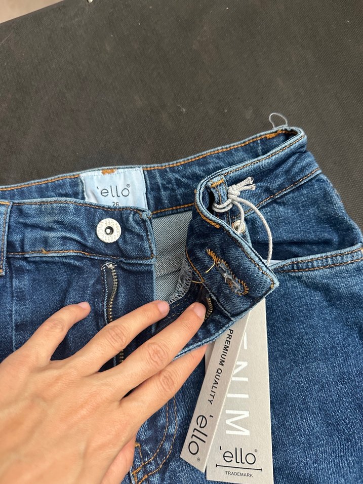 Kadınlar için yüksek bel, mavi denim pantolon, günlük rahat kullanım için uygundur. Marka: 'ello'. Beden 26. Yeni ve etiketlidir