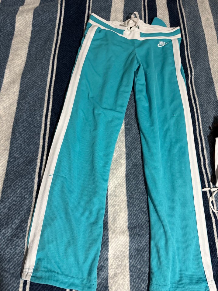 Kadınlara özel, parlak mavi renkte, beyaz yan şeritli eşofman altı. Spor ve günlük kullanım için sentetik kumaştan üretilmiştir. (Bazı yerler de takılma olduğu için öyle gözüküyor düşük beldir)