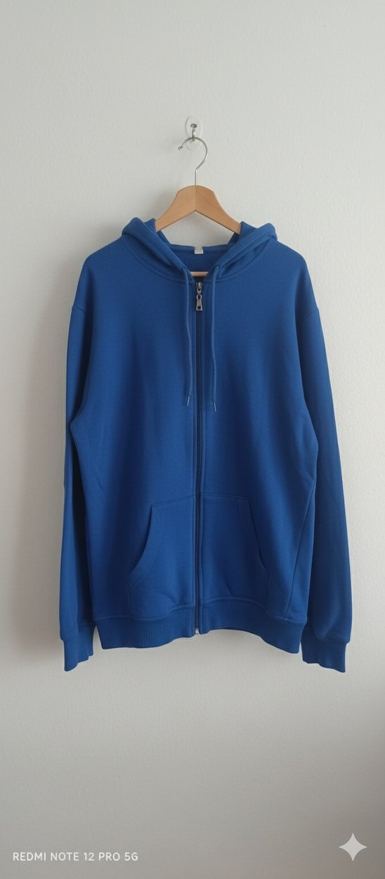 Kadın Mavi Fermuarlı Kapüşonlu ceket