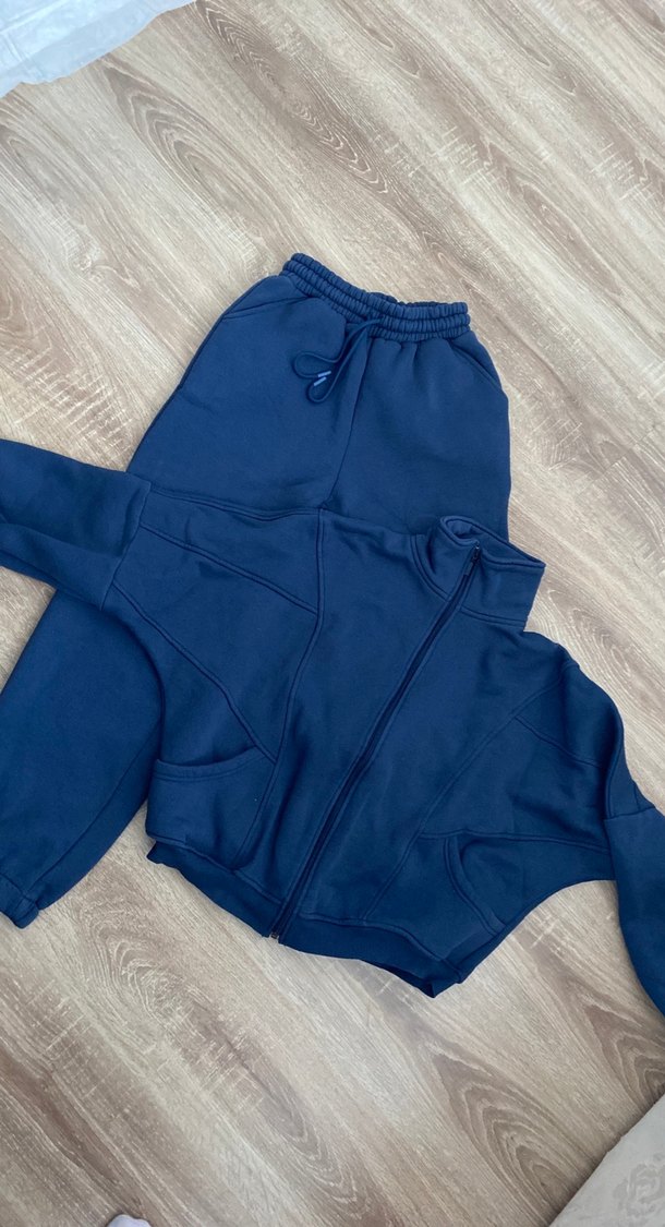 Kadın Mavi Fermuarlı Kısa Eşofman Takımı