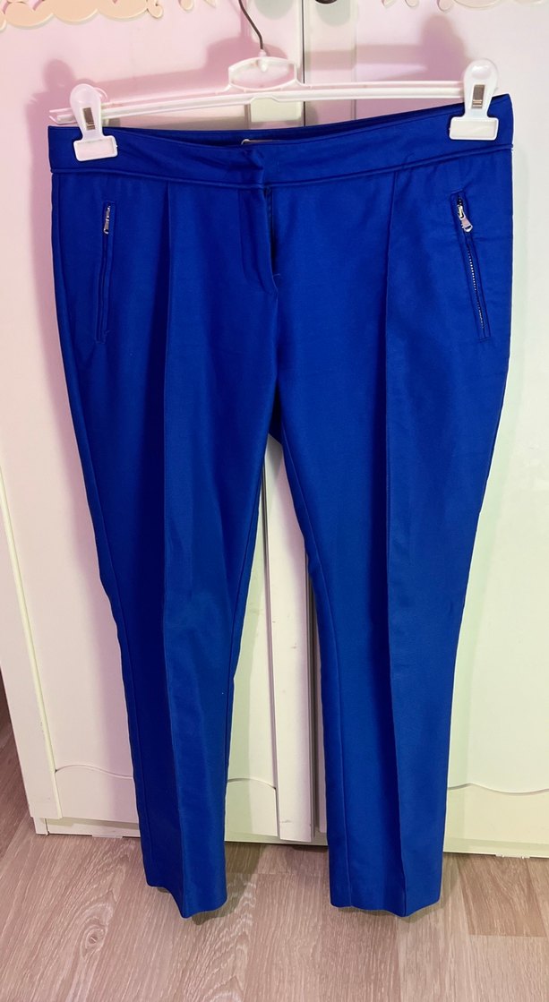 Kadın Mavi Fermuarlı Kumaş Pantolon