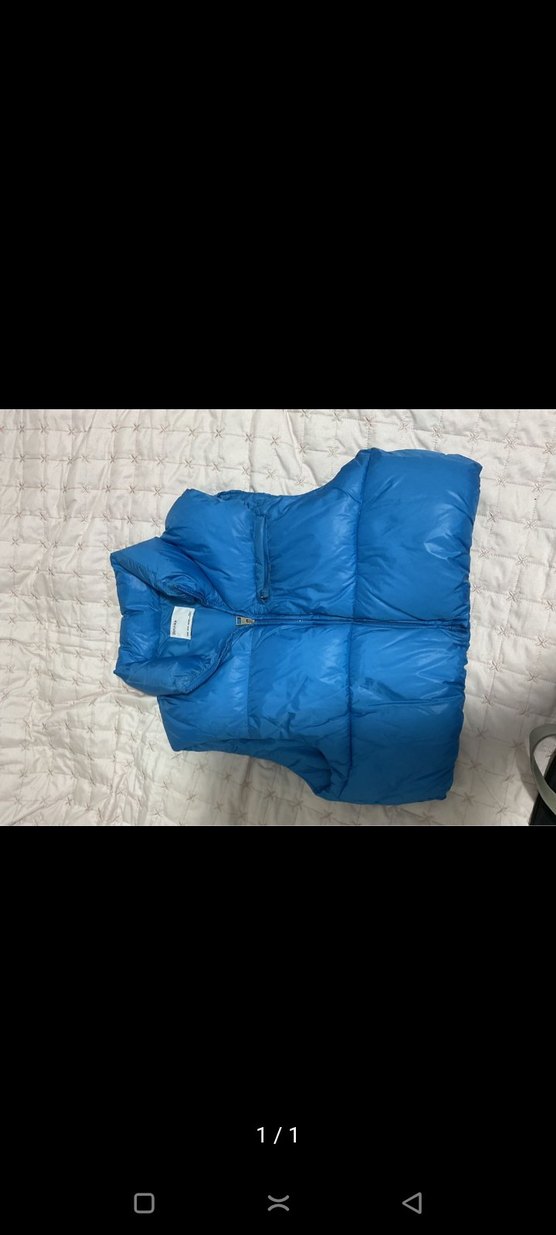 Kadınlar için fermuarlı, yaka detaylı, kolsuz şişme yelek. Yumuşak ve sıcak kumaştan üretilmiştir, dış mekan kullanımı için uygundur. Koyu mavi renktedir ve normal boydadır.
