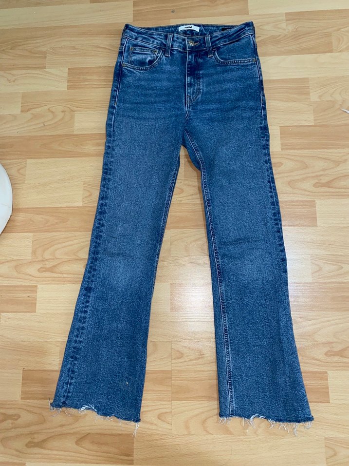 Mavi denim kot pantolon, normal kesim. maria high rise flare jean. tam bedeninden emin değilim ben normal jeanlarda 32 34 bedenken giydim
