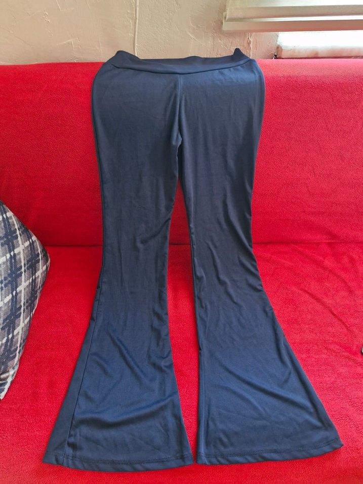 Kadınlar için mavi, pile detaylı, normal boyda, dar kesim flare spor tayt. İspanyol paça.