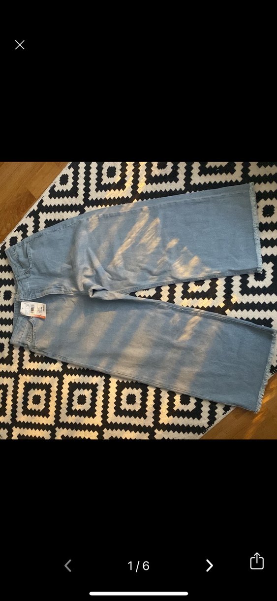 Mavi, geniş kesim, midi boy kot pantolon. Günlük sokak modasına uygun, kolay şıklık sağlayan bağlama desenli tasarım. Bel ölçü 41 cm boy ölçü 91 cm