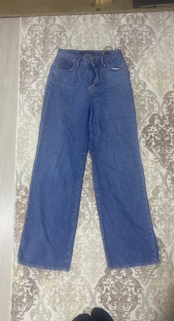 Kadınlar için mavi denim, geniş kesim ve midi boyda jean. Desensiz, günlük kullanım için zahmetsiz şıklık sunar.