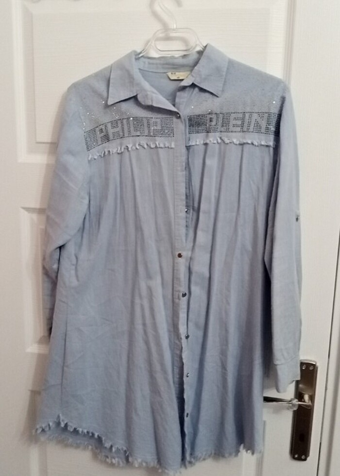 Kadın mavi gömlek
