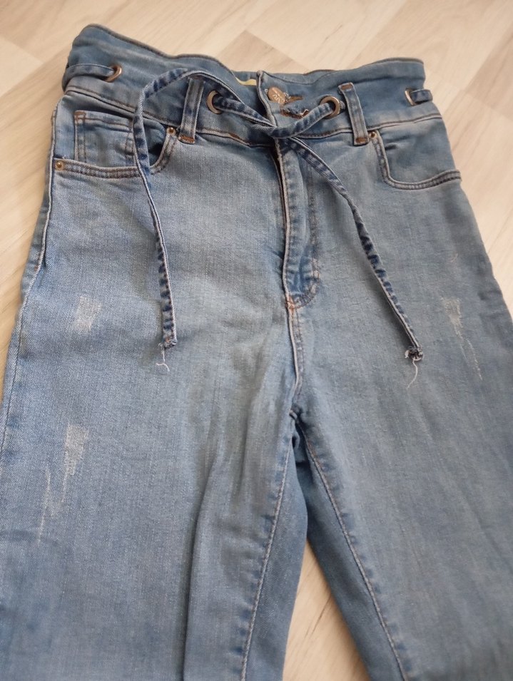 Kadınlar için mavi-gri renkte, kemerli, normal boyda regular fit denim pantolon. Günlük kullanıma uygun, rahat ve sokak stiline uygun.