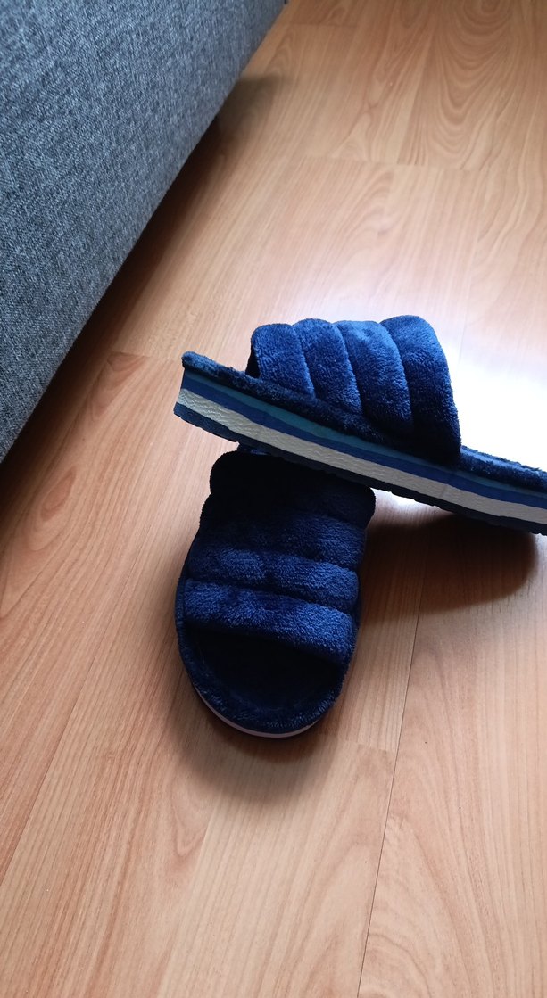 Kadın Mavi Kadife Terlikler, Cırt Cırtlı