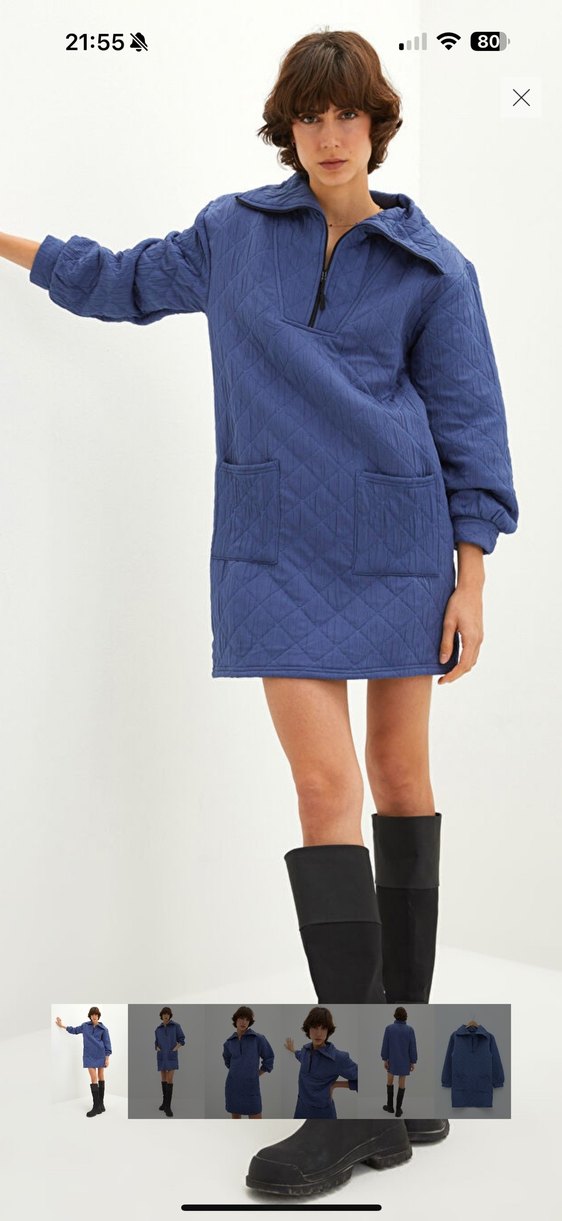 Kadın Mavi Kapitone Midi kapitone Elbise