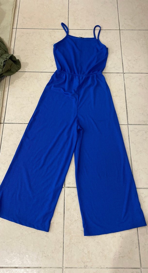 Kadın Mavi Kapri Tulum, Askılı, Salaş Kesim