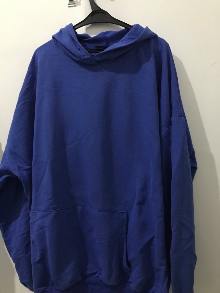 Kadınlar için mavi, kapüşonlu, uzun kollu ve yuvarlak yakalı bol kesim sweatshirt. Yumuşak ve sıcak kumaştan, günlük kullanıma uygun, zahmetsiz şıklık sunar.