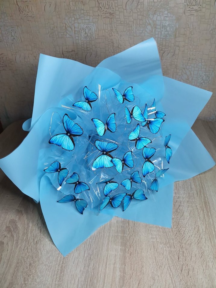 Partiler için tasarlanmış, fiyonk detaylı, renkli mavi kelebek broş seti. Çağdaş ve avangard tarzlara uygundur.