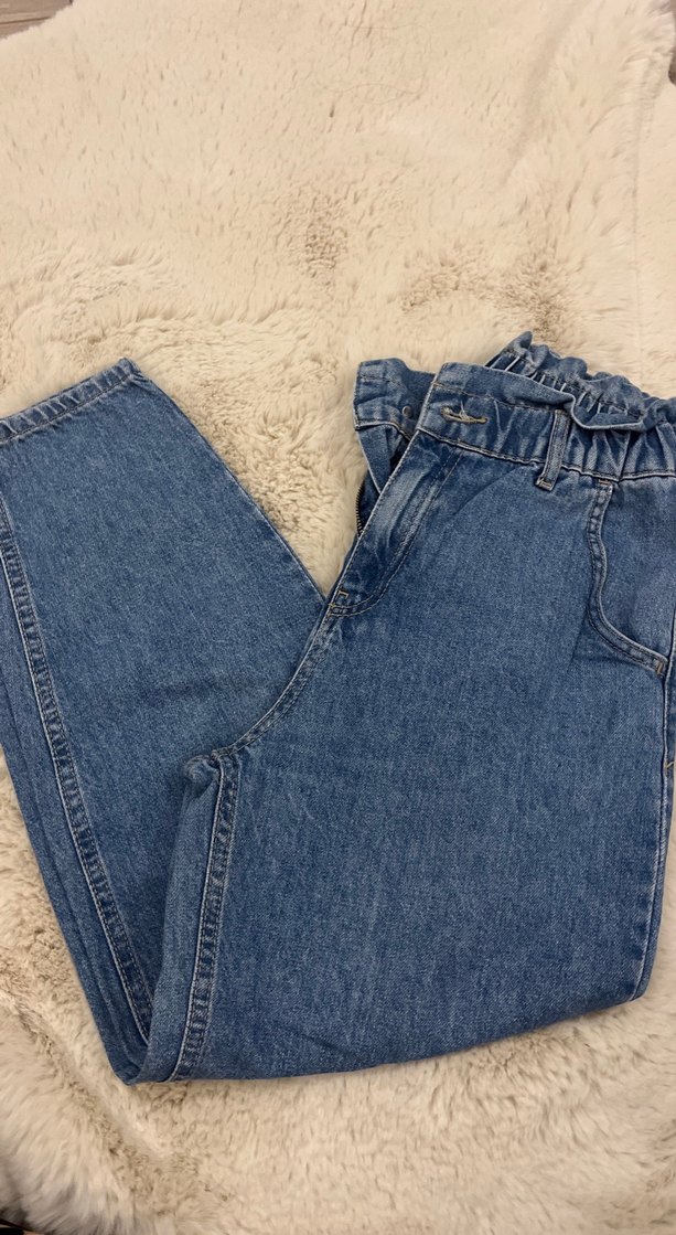 Kadınlar için kemerli, bol kesim ve kot pantolon. Rahat denim kumaştan üretilmiş, günlük kullanıma uygun sokak stili için ideal. Tek renk mavi tonlarında.