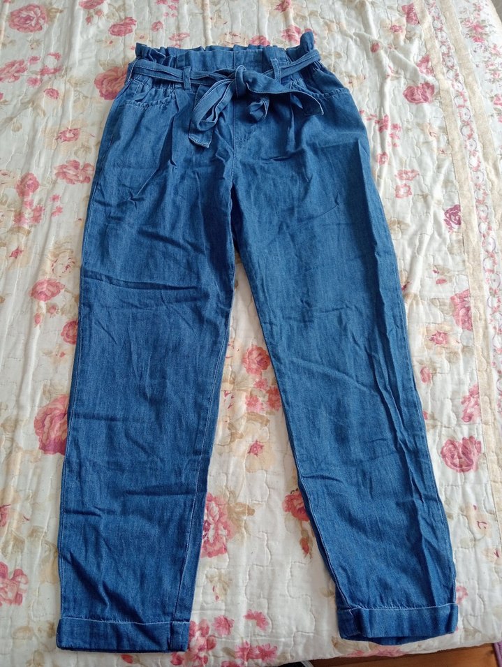 Mavi tonlarda, bel kemerli, bol kesim, midi uzunlukta kot pantolon. Günlük kullanıma uygun rahat bir normcore tarz sunar.