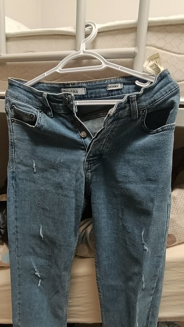 Kemer detaylı, dar kesim mavi denim pantolon. Normal midi boyda, desen içermeyen sokak stiline uygun rahat bir model.