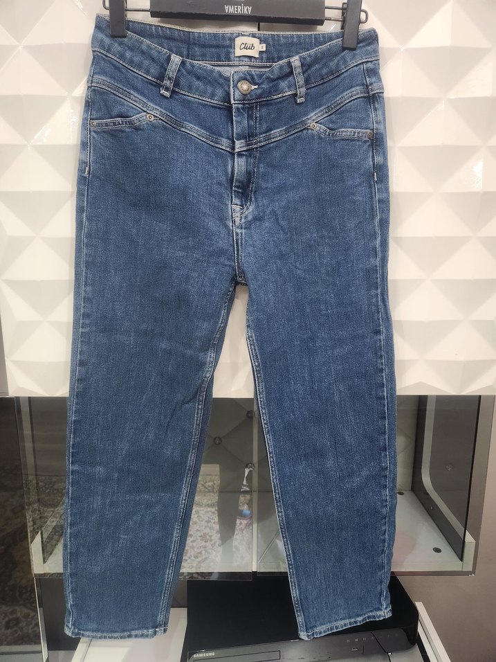Kadınlar için mavi denimden, kemer detaylı, regular fit ve midi boyda jean. Günlük kullanım için rahat ve şık bir sokak stili sunar.