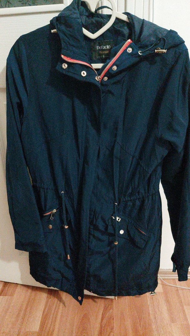 Fitted kesim, kemerli ve notched lapel yakalı kadın midi ceket. Uzun kollu, koyu mavi ve düz desensiz, sokak stiline uygun.