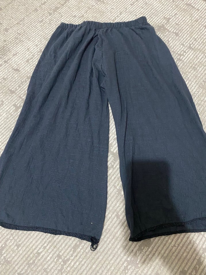 Kadın Mavi Keten Bol Kesim Midi şort