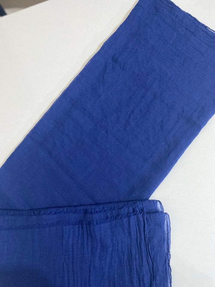 Kadınlar için koyu mavi tonunda, yumuşak keten kumaştan yapılmış drapeli şal. Minimalist ve bohem tarzlara uygun, sade ve şık bir dokunuş sağlar.
