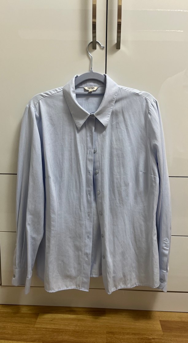 Kadın Mavi Keten Gömlek, Düğmeli, Uzun Kollu