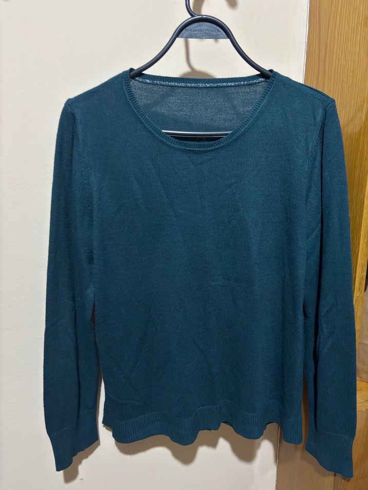Koyu mavi keten kumaştan, yuvarlak yakalı ve uzun kollu salaş kesim kazak. Minimalist ve sade tasarımıyla günlük kullanıma uygun.