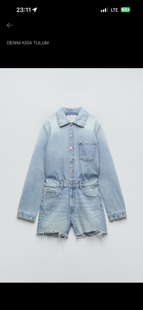 Kadın Mavi Kısa Denim tulum
