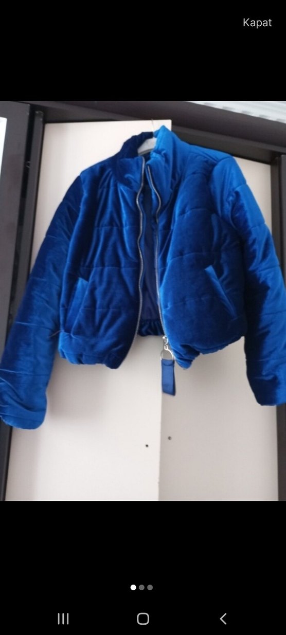 Kadın mavi Kısa Fermuarlı Kış Montu