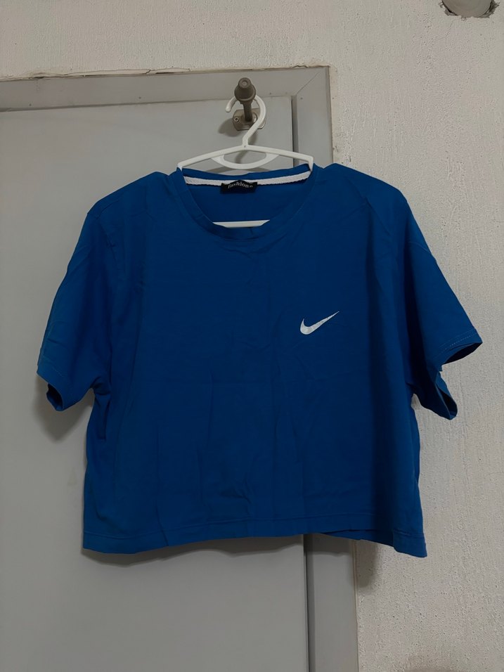 Koyu mavi, yuvarlak yakalı, kısa kollu ve bol kesim kadın tişörtü. Keten kumaştan, baskılı detaylı, günlük kullanıma uygun rahat ve şık bir parça.