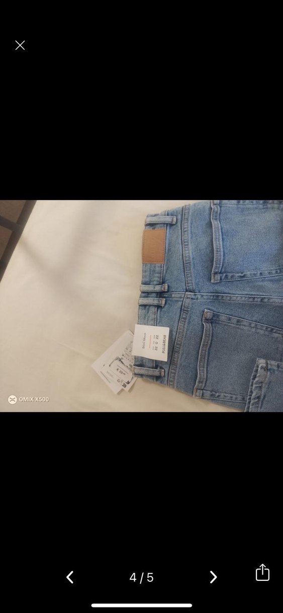 Kadınlar için dar kesim, kısa paça kot pantolon. Kot kumaştan, sokak stili ve günlük kullanım için uygun, tokalı ve baskılı desenli mavi renkli.