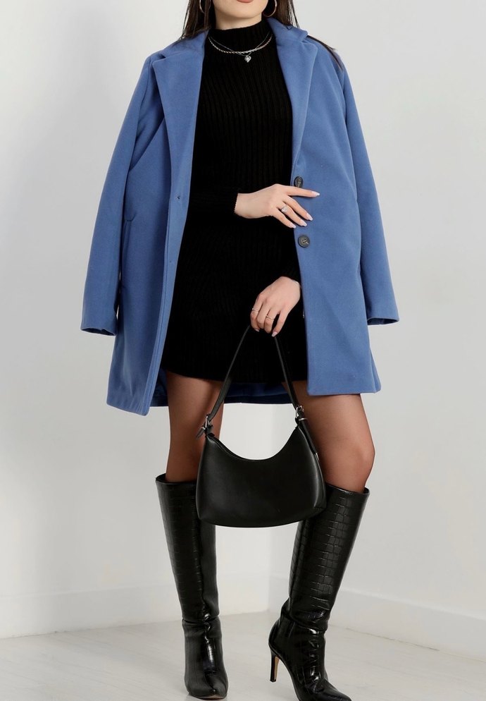 Kadınlar için mavi renkli süet kısa ceket, çıtçıt yakalı ve regular fit kesimle minimal ve sokak tarzı şıklık sunar.