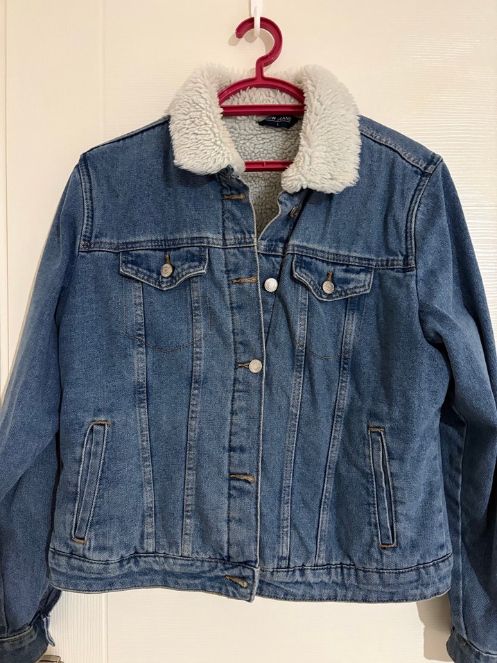 Mavi kot ceket, kürklü ve rahat kesimle uzun kolludur. Notlu yaka ve normal midi boyda, günlük rahat sokak tarzı için uygundur. Bedeni uymadigi icin giyilmedi