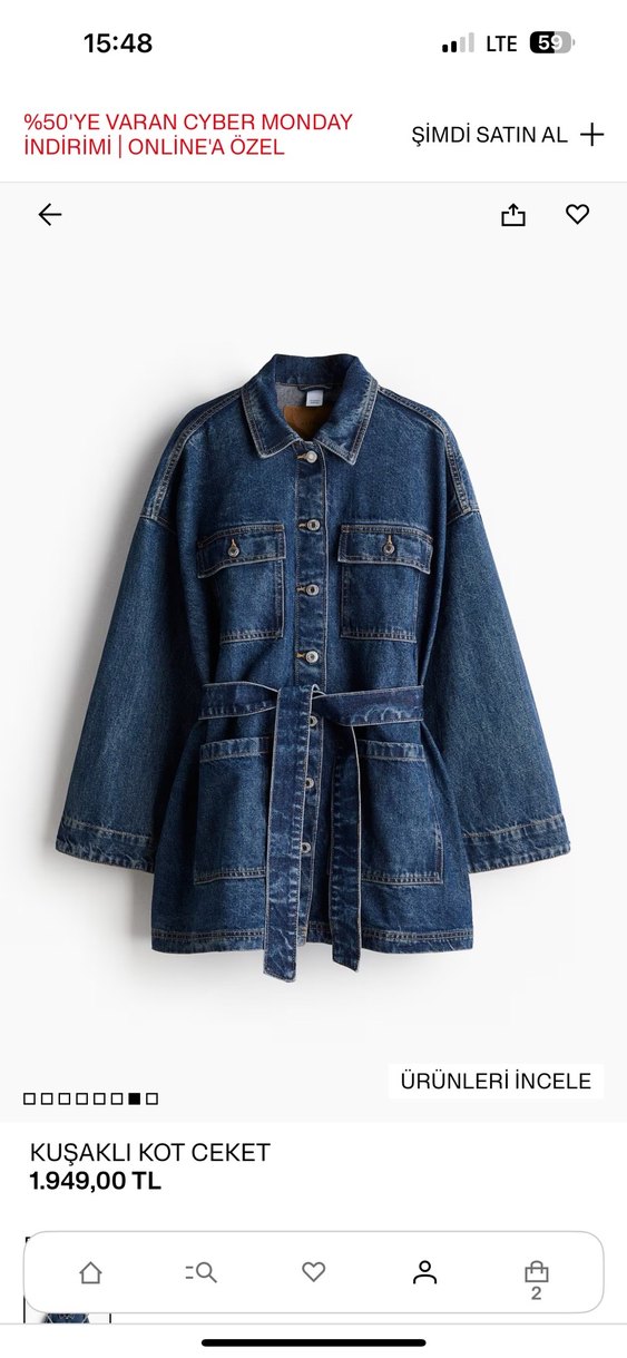 Mavi kot ceketin kuşaklı beli ve salaş kesimi vardır. Rahat bir sokak stili sağlar. #hm #h&m #kotceket #zara #denimceket #denim