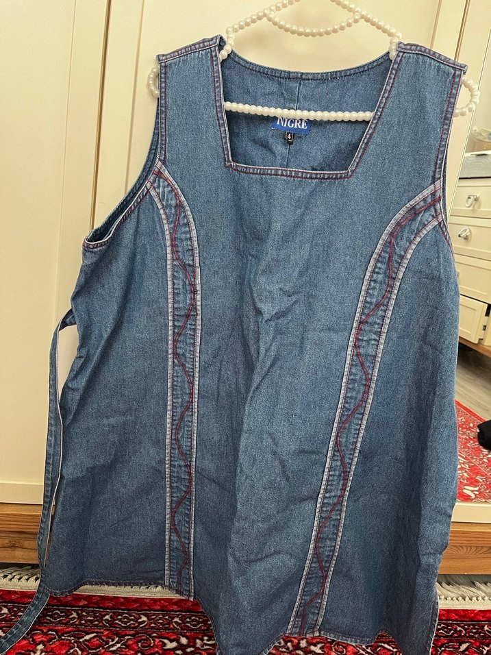 Yumuşak kot kumaştan, bel detaylı, askısız ve bol kesim mavi hamile tunik, günlük rahat kullanım için uygundur.