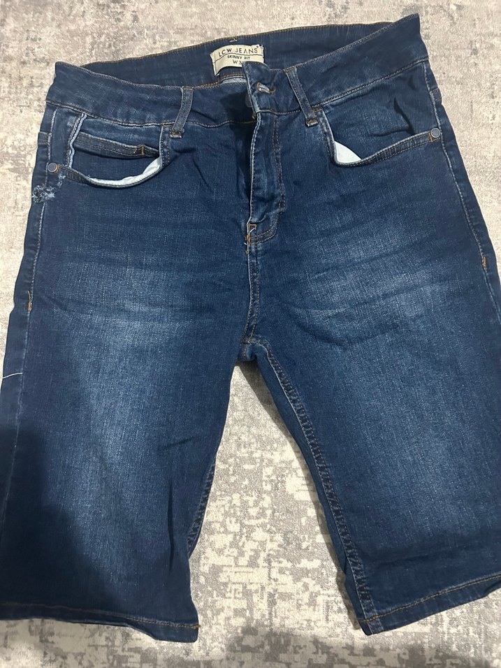 Kadınlar için mavi kot, kemerli, , fitted kesim şort. Günlük rahat kullanım için uygundur.